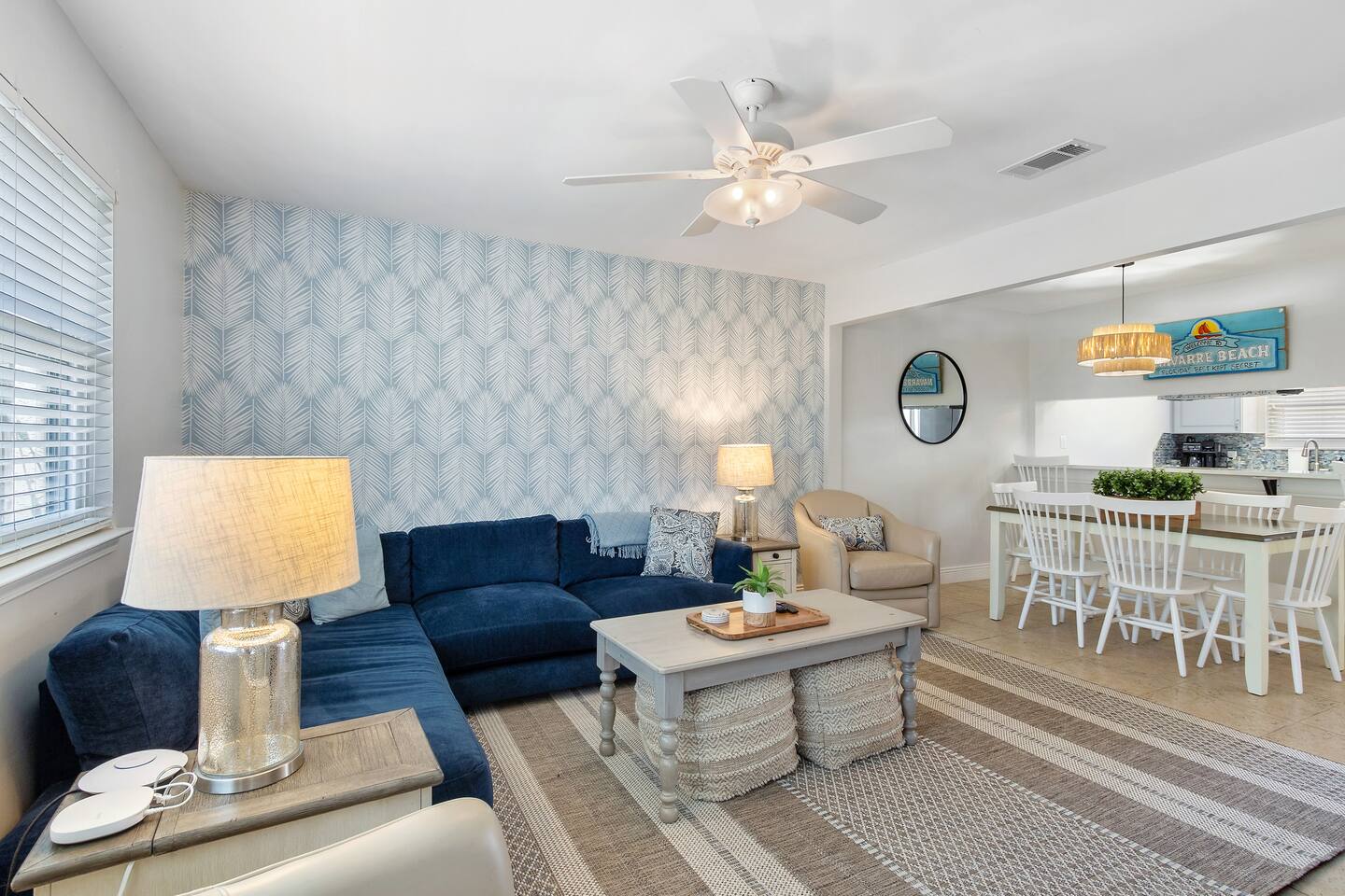 Unwind at Deja Blue, a superb 2-bed, 2.5-bath townhouse only steps from the beautiful white sands of Navarre Beach. Families and friends seeking a luxurious vacation will appreciate the convenience and indulgence, including a pool right outside the front door, a tranquil back patio, a thoughtfully equipped kitchen, a full coffee bar, and complimentary beach supplies for your enjoyment.